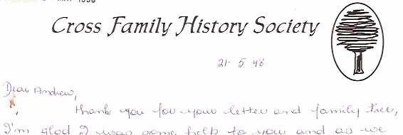 Back in the late 1990s, I was in contact with a Pam McClymont from Australia. She was the sole worker behind The Cross Family History Society, and she had amassed a vast amount of information about the surname and its journey to Australia from its home in Ely, Cambridgeshire.